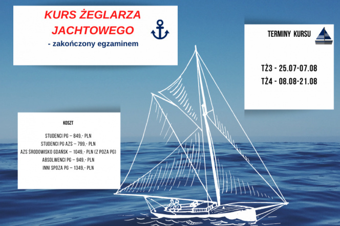 Zapraszamy do wzięcia udziału w kursie na sternika motorowodnego. Szczegóły na plakacie oraz na stronie https://csa.pg.edu.pl/zagle