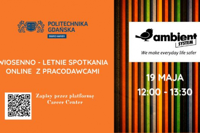Biuro Karier PG zaprasza do wzięcia udziału w spotkaniu online z firmą Ambient- System Sp. z o.o., które odbędzie się w ramach wydarzenia „ Wiosenno-letnie spotkania online z pracodawcami”.